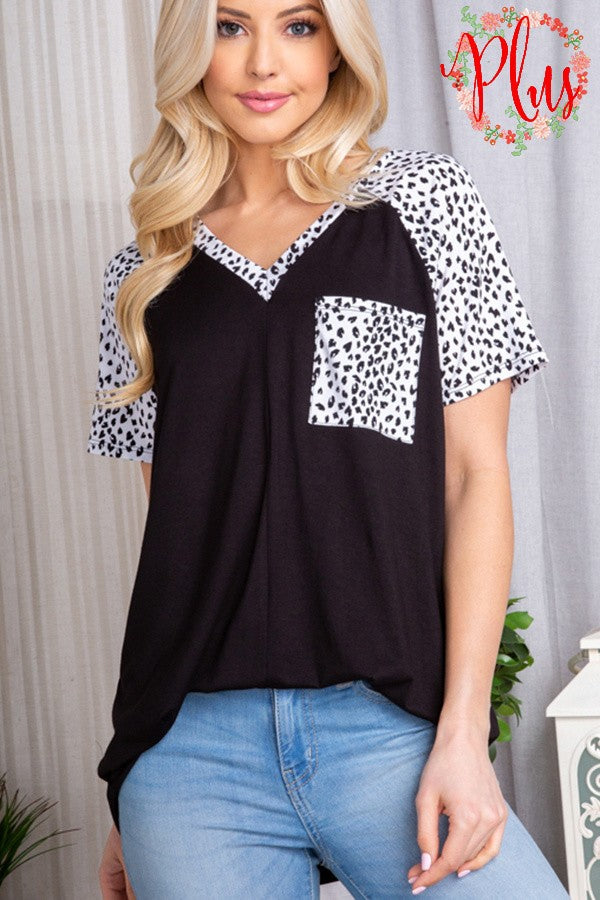 Plus Size V Neck Animal Print Pocket Top